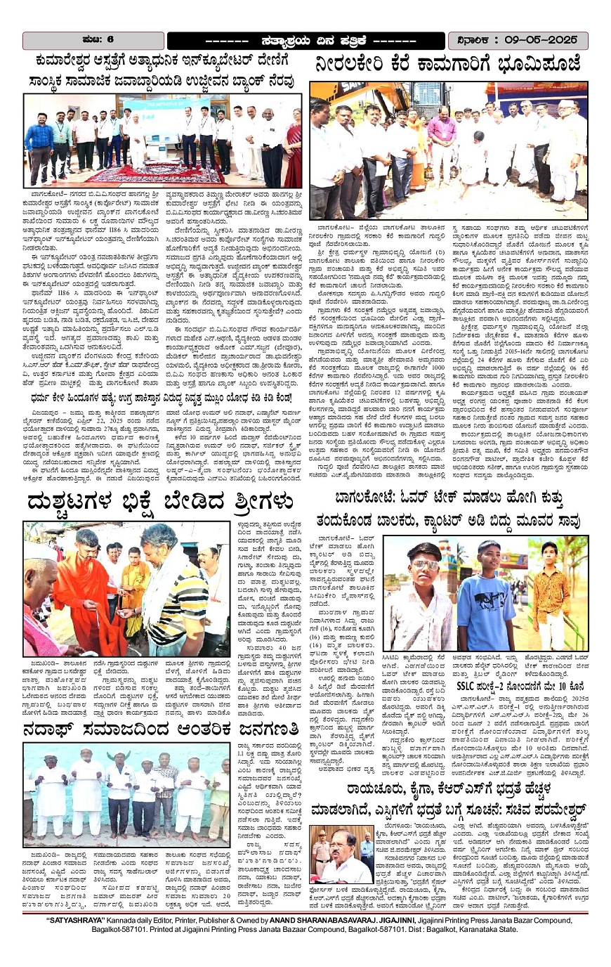 SATYASHRAYA NEWS Page: 4 May 09, 2025 1 2 3 4 Page 1Page 2Page 3Page 4 × SATYASHRAYA NEWS Page 1Page 2Page 3Page 4 << First << 4 >> Last >> Page no 1Page no 2Page no 3Page no 4