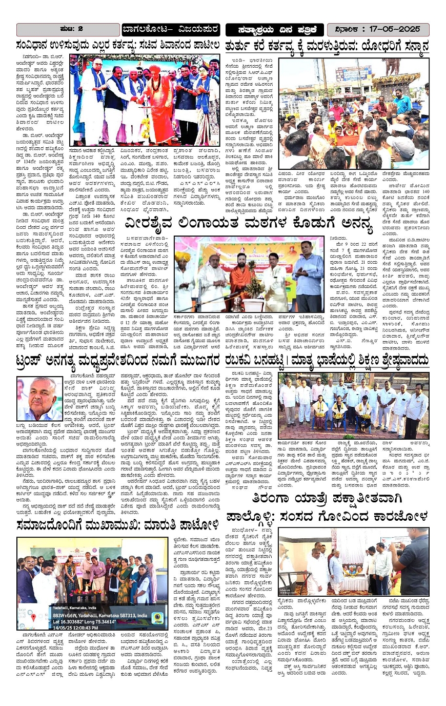 SATYASHRAYA NEWS Page: 2 May 17, 2025 1 2 3 4 Page 1Page 2Page 3Page 4 × SATYASHRAYA NEWS Page 1Page 2Page 3Page 4 << First << 2 >> Last >> Page no 1Page no 2Page no 3Page no 4