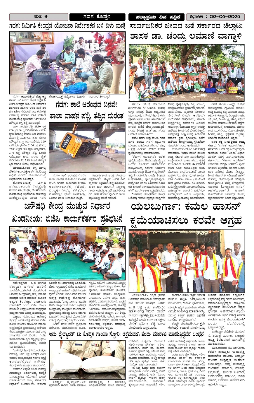 SATYASHRAYA NEWS Page: 4 June 02, 2025 1 2 3 4 Page 1Page 2Page 3Page 4 × SATYASHRAYA NEWS Page 1Page 2Page 3Page 4 << First << 4 >> Last >> Page no 1Page no 2Page no 3Page no 4