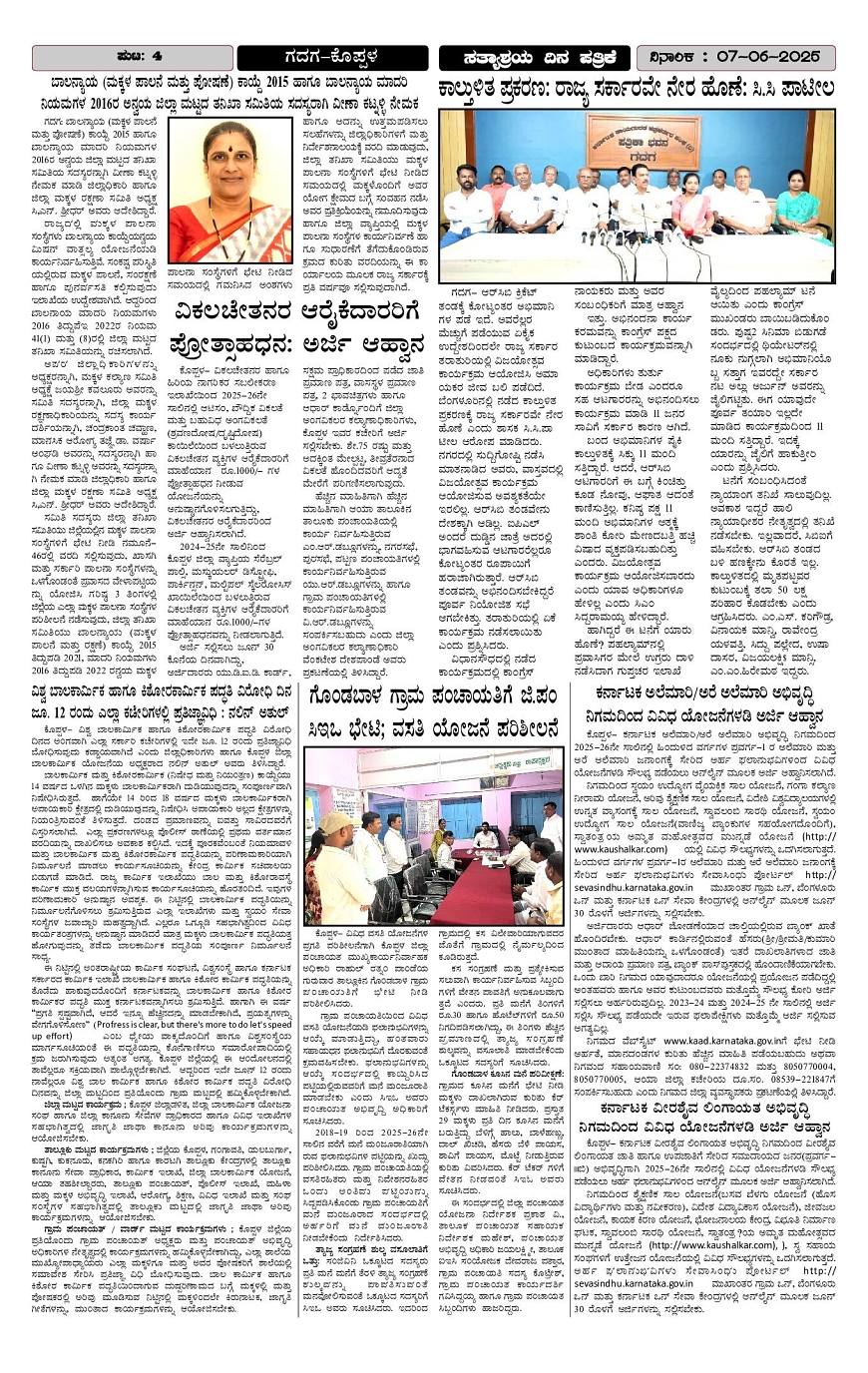 SATYASHRAYA NEWS Page: 4 June 07, 2025 1 2 3 4 Page 1Page 2Page 3Page 4 × SATYASHRAYA NEWS Page 1Page 2Page 3Page 4 << First << 4 >> Last >> Page no 1Page no 2Page no 3Page no 4